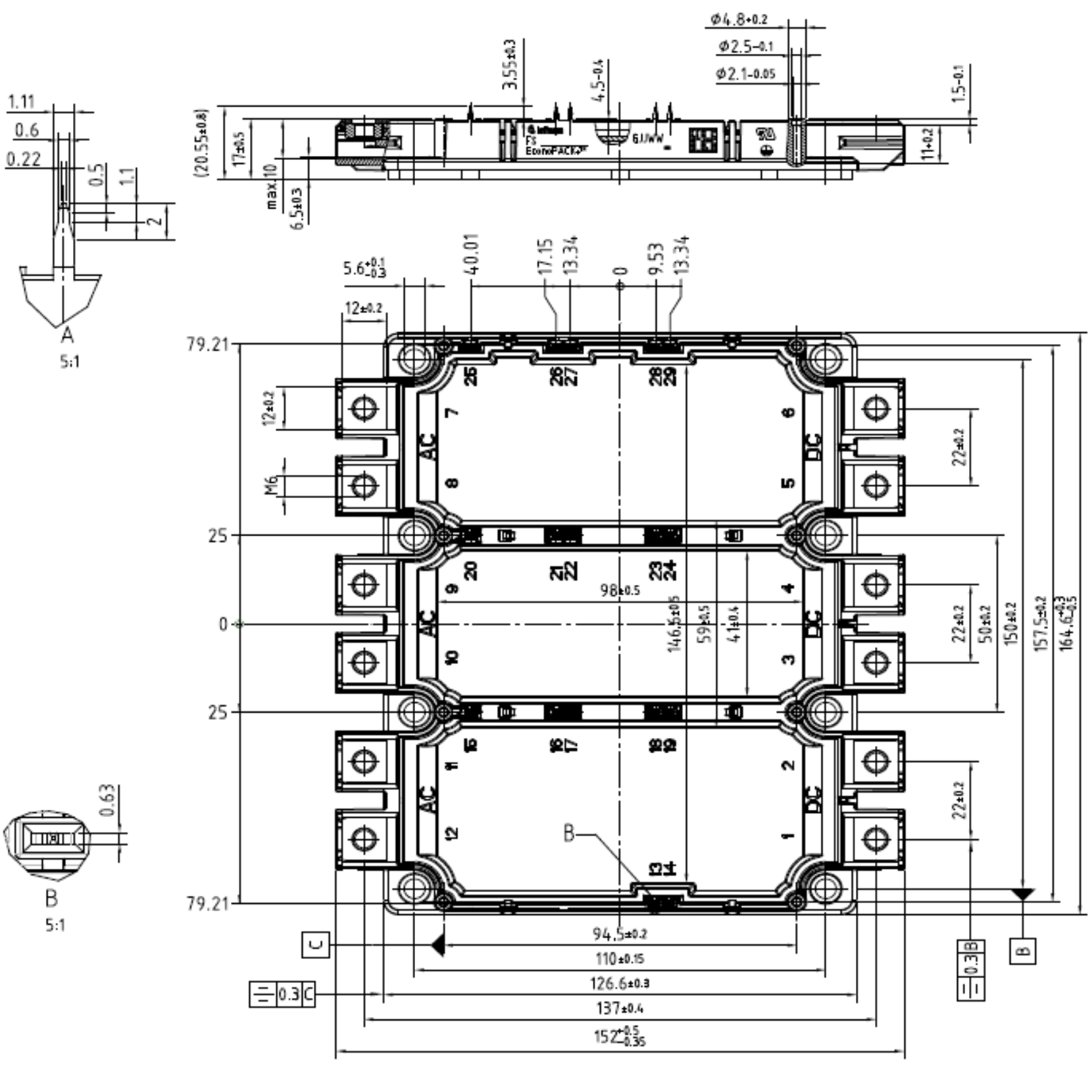 Corrente contínua do coletor a 25ºC: 660 A